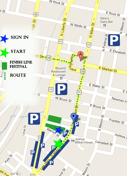 The upper level of the Municipal Parking Deck located on Water Street is free and convenient to the Start/Finish.